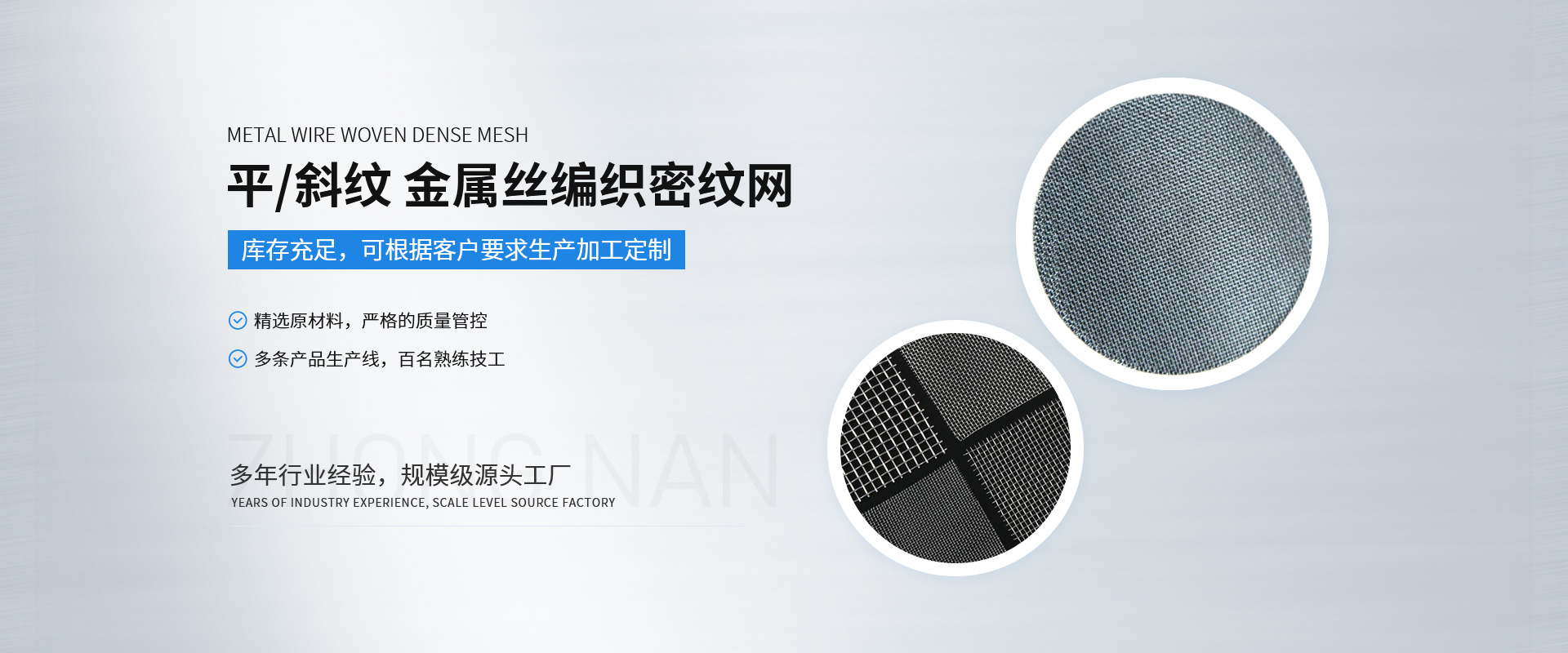 新鄉(xiāng)市中南金屬網(wǎng)有限公司成立于1999 年,公司設(shè)在河南省新鄉(xiāng)市。在過去的十幾年來,我們堅(jiān)持以嚴(yán)格的管理措施、雄厚的技術(shù)力量、良好的工藝設(shè)施,質(zhì)量上乘、信譽(yù)為上為原則,把樹立良好的企業(yè)形象為工作宗旨,歷經(jīng)市場的嚴(yán)峻考驗(yàn)并贏得廣大用戶的一致好評。金屬絲網(wǎng)編織結(jié)構(gòu)形式有平紋和斜紋兩種方法,嚴(yán)格按照航空軍品標(biāo)準(zhǔn)HB1862—93和標(biāo)準(zhǔn)GB/T5330—2003標(biāo)準(zhǔn),并等效采用國際標(biāo)準(zhǔn)ISO9044—90標(biāo)準(zhǔn)組織生產(chǎn)。 公司擁有生產(chǎn)設(shè)備和技術(shù)人員,主要生產(chǎn)不銹鋼篩網(wǎng)、磨料網(wǎng)、金屬絲編織方孔網(wǎng)、篩網(wǎng)、濾網(wǎng) 、篩分網(wǎng) 、過濾網(wǎng)、不銹鋼網(wǎng)、絲網(wǎng)、金屬絲網(wǎng)、金屬絲編織密紋網(wǎng)、特種網(wǎng)、不銹鋼密紋網(wǎng)、荷蘭網(wǎng)、席型網(wǎng)。絲網(wǎng)材質(zhì)選用黃銅、錫青銅、不銹鋼、純鎳等。席型網(wǎng)規(guī)格7/44目—500/3500目,方孔網(wǎng)規(guī)格1/2目—500目,網(wǎng)孔25mm—0.028mm,產(chǎn)品廣泛用于機(jī)械、化工、化纖、石油、醫(yī)藥、橡膠、濾芯、固體果粒篩分、流體過濾以及裝飾、防塵、骨架支撐等。 我們以“視質(zhì)量為生命、以信譽(yù)求生存、以科技促發(fā)展、以優(yōu)*產(chǎn)品為客戶服務(wù)”的經(jīng)營理念,真誠的希望與各界人士攜手并進(jìn),共創(chuàng)輝煌!